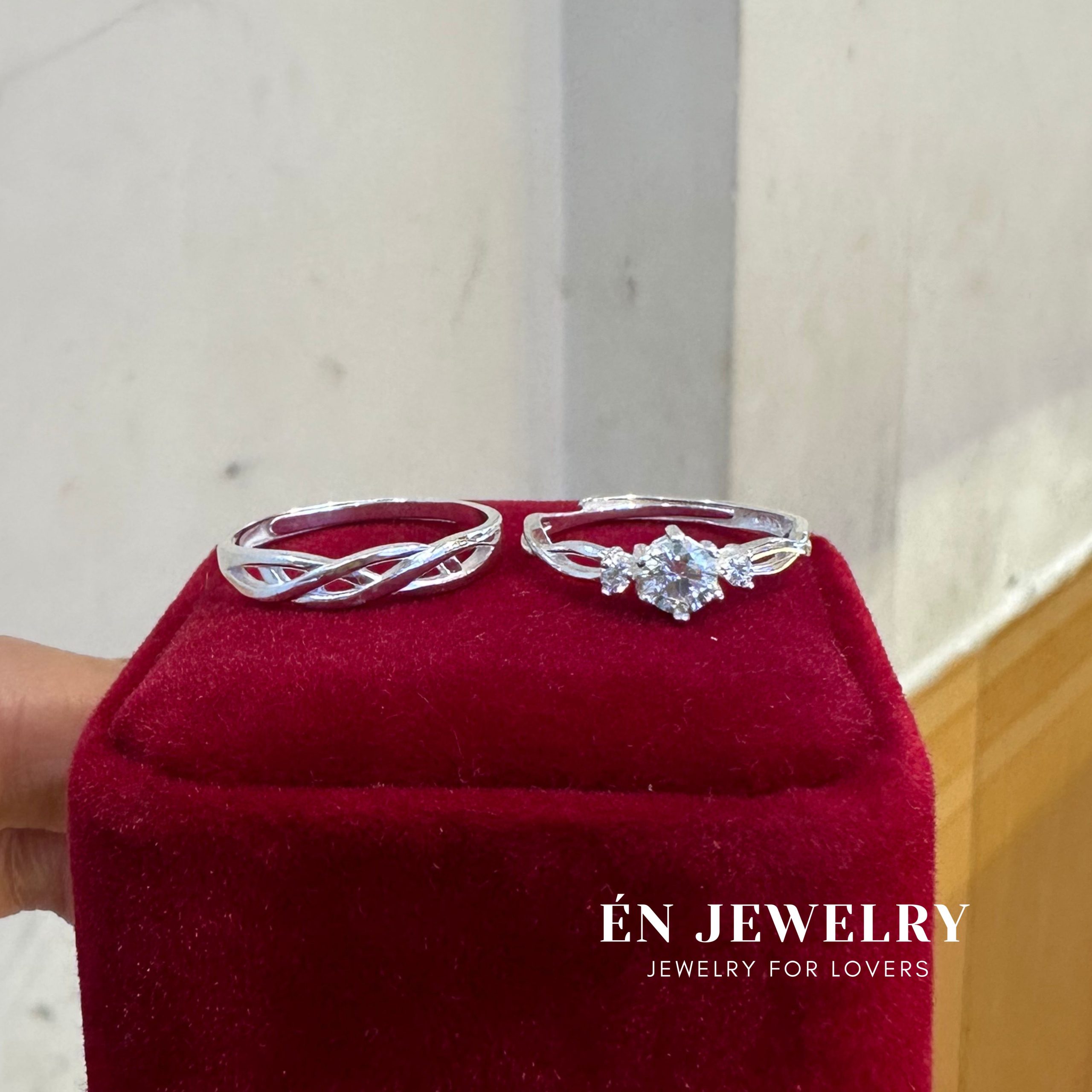 Nhẫn bạc mạ vàng trắng, viên chủ kim cương nhân tạo Moissanite