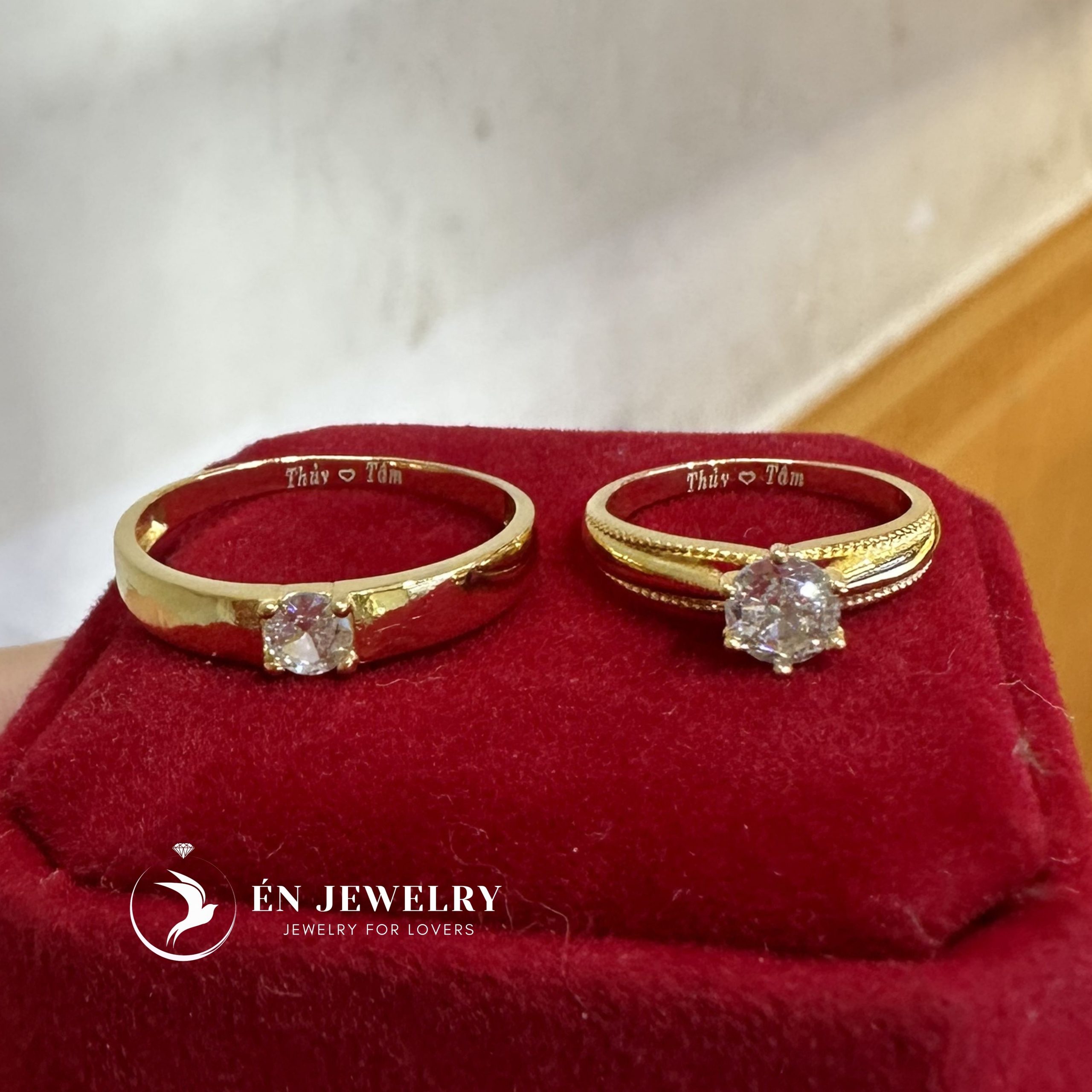 Cặp nhẫn chất liệu bạc mạ vàng vàng có 3 bản: