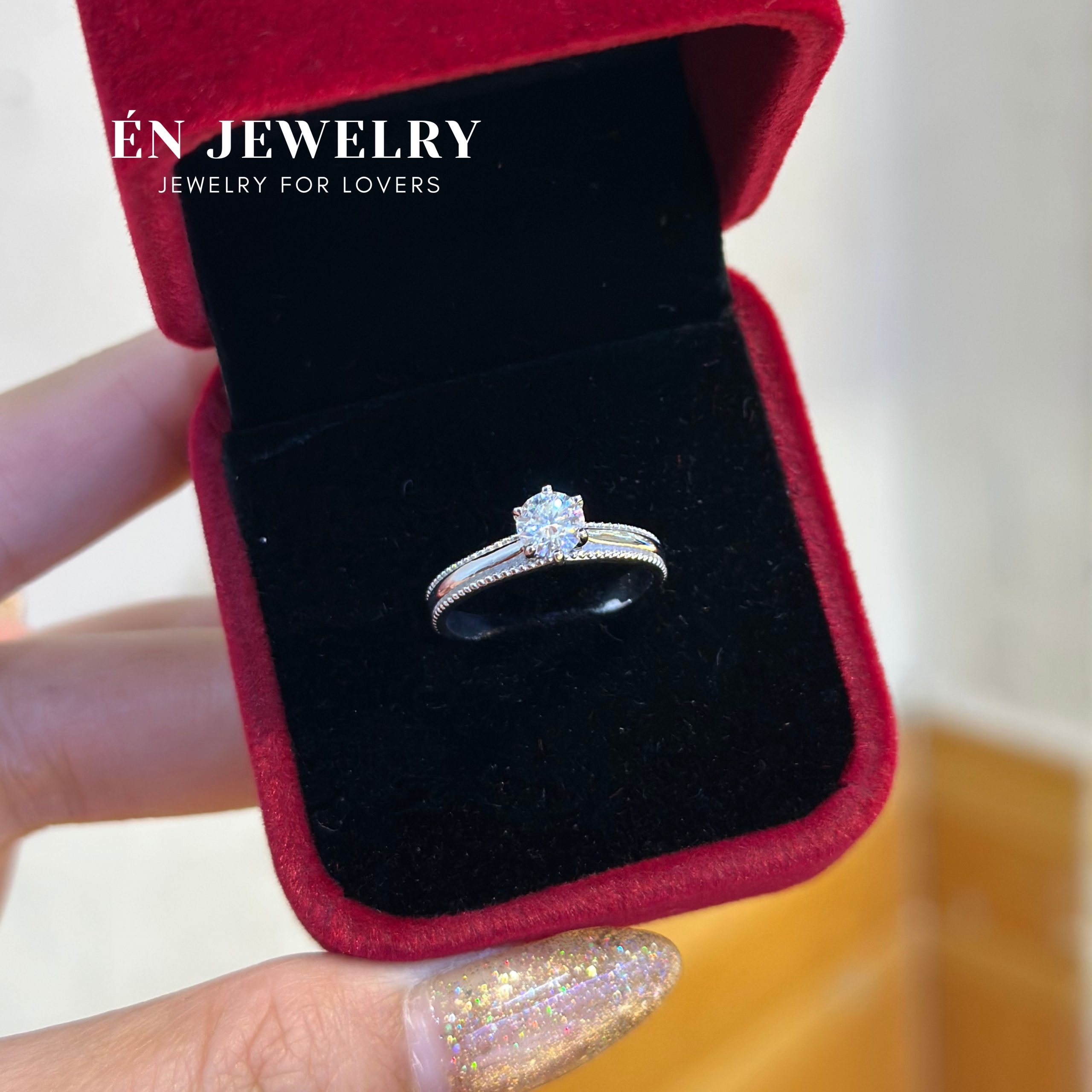 - Nhẫn Cầu Hôn Viên chủ kim cương nhân tạo Moissanite kiểm định GRA