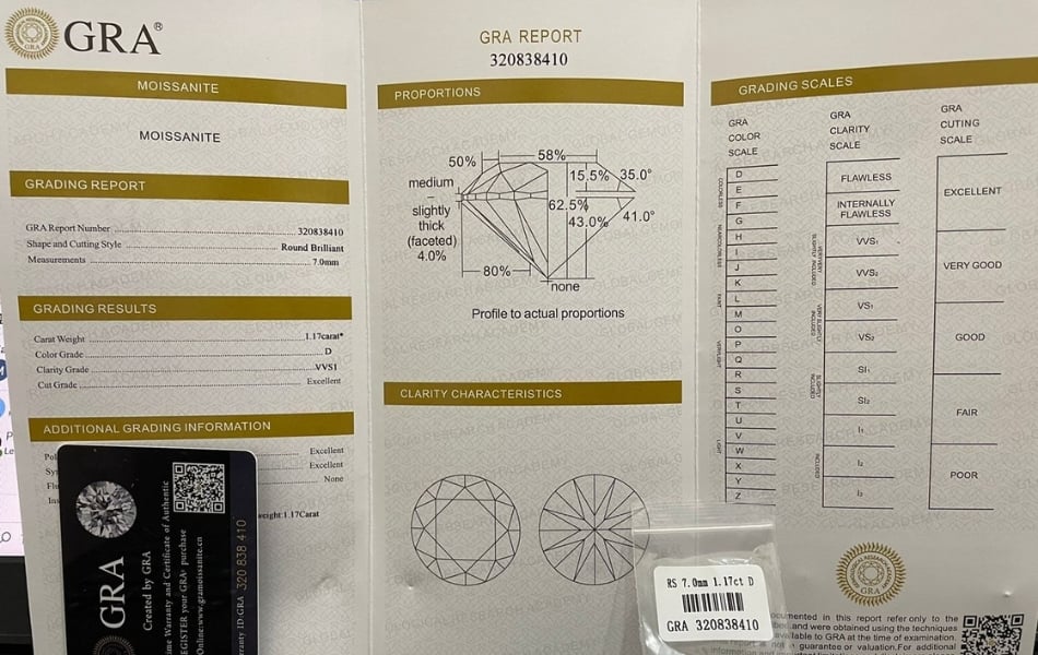 Tại Én Jewelry, mỗi viên Moissanite đều được kiểm định rõ ràng, đi kèm thẻ và giấy chứng nhận chất lượng GRA, đảm bảo nguồn gốc minh bạch và độ tinh khiết chuẩn quốc tế. Nhờ vậy, Moissanite trở thành lựa chọn hoàn hảo cho nhẫn cầu hôn, nhẫn đôi hay trang sức cao cấp, vừa sang trọng, vừa tinh tế mà vẫn hợp lý về chi phí. ✨💍